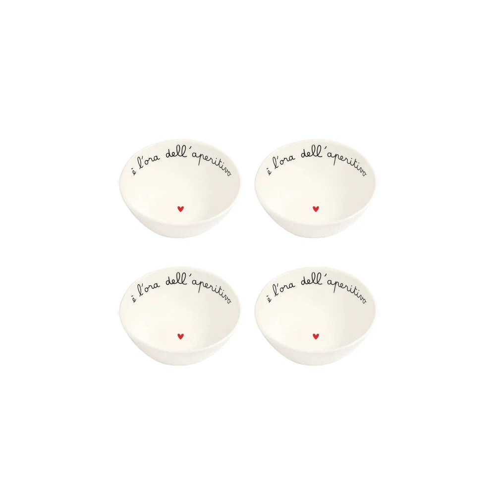 Set 4 Coppette in gres decoro E' l'ora dell'aperitivo
