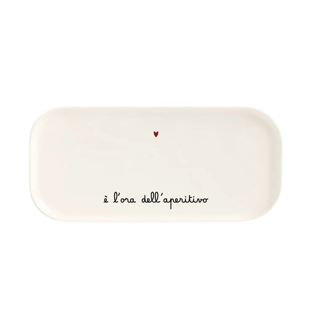 Vassoio rettangolare in gres decoro E' l'ora dell'aperitivo 31.8x15 cm