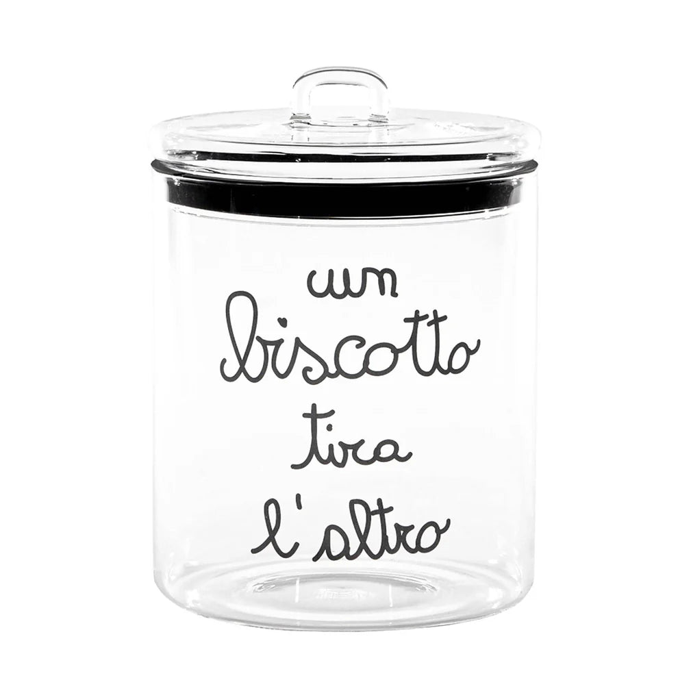 Biscottiera in vetro borosilicato decoro Un biscotto tira l'altro