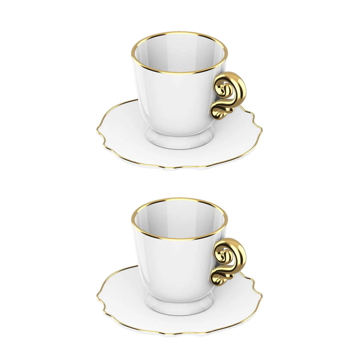 Il set da 2 tazze con piattino coordinato è perfetto per gustare un cappuccino in compagnia, oppure come idea regalo natalizia elegante e di design. L’inconfondibile stile Bialetti, sinonimo di tradizione e qualità italiana, si fonde con la magia del Natale nella collezione Pure Gold.